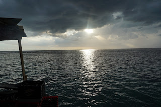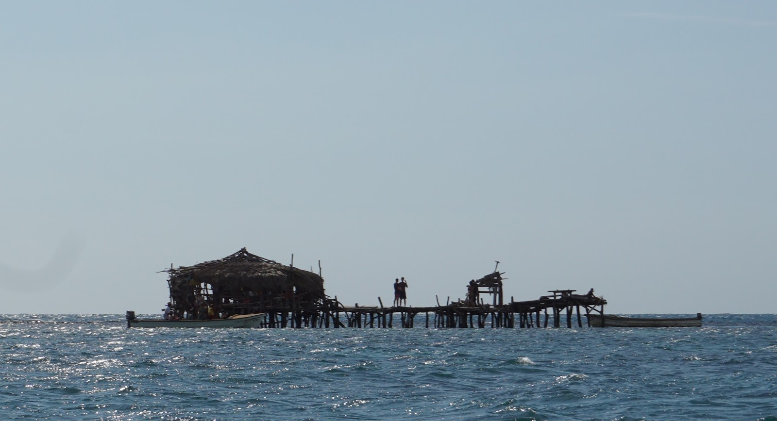 H had arranged a little adventure for us. YASSS! A fishing boat, arranged through the hotel, pulled right up on the shore. A well dressed, pleasant Huggie helped us into the pretty little fishing boat, equipped with a 60HP engine (a single outboard engine…yikes!) and off we went. We were headed for the famous Floyd’s Pelican Bar…a rugged construction in the middle of the ocean where one can go to drink, eat and soak up a very special vibe.